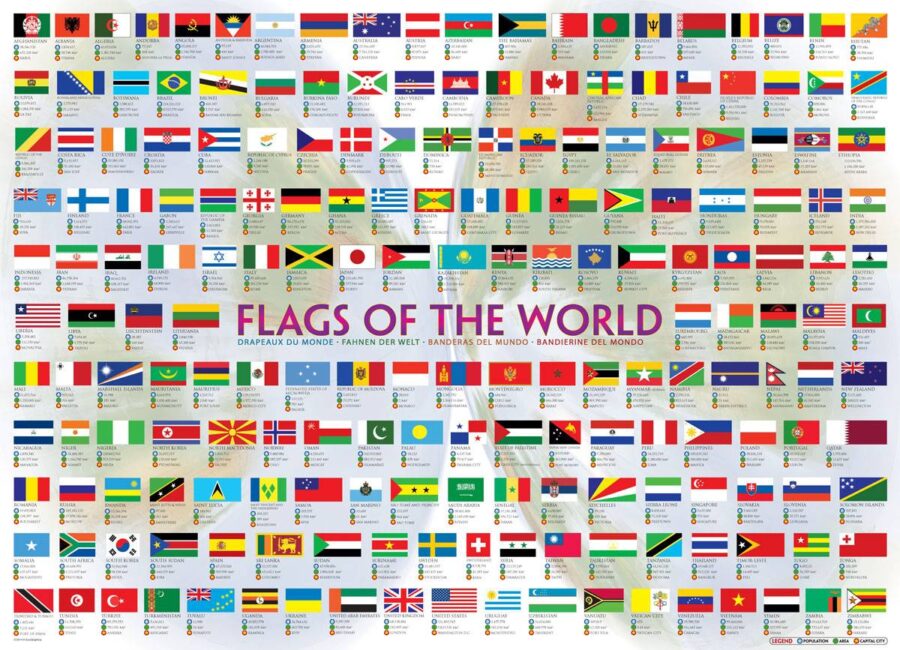 Šioje dėlionėje yra visų šalių vėliavos nuo Afganistano iki Zimbabvės. Taip pat pateikiama svarbi informacija, pavyzdžiui, gyventojų skaičius, plotas ir sostinė.