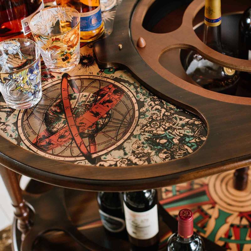 Pradžia Antikiniai ir išskirtinio dizaino gaubliai Gaublys-baras Artemide Classic Brown Trolley Zoffoli. 50cm skersmens, 98cm aukščio. Rankų darbo, Italija