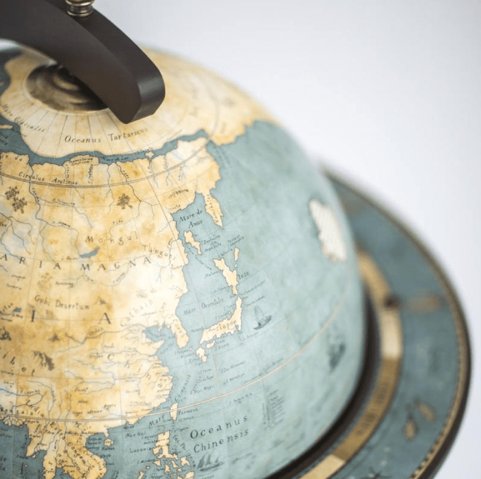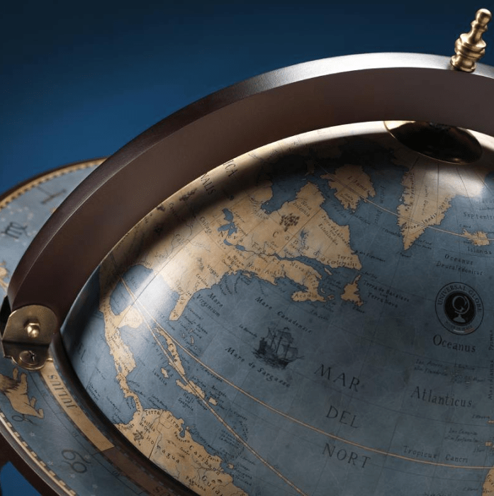 Žemėlapis, pilnas geografinių nuorodų, yra tiksli XVIII amžiaus reprodukcija. Gaublio viduje yra dekoratyviniai ir mitologiniai motyvai, įkvėpti vokiečių-olandų kartografo Andreaso Cellariuso „Atlas Coelestis seu Harmonia Macrocosmica“.