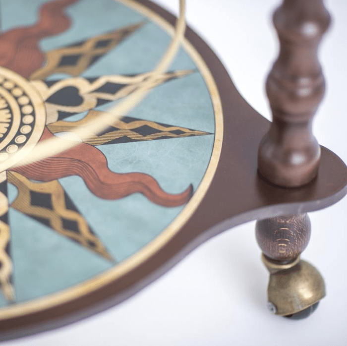 Papildomus butelius galima laikyti ant apatinės žemos platformos, papuoštos gražia vėjų rože, puikiai derančia su zodiako iliustracija aplink jo pusiaujo liniją.